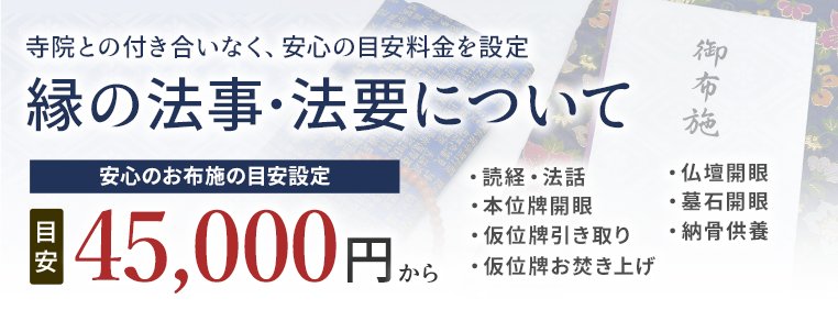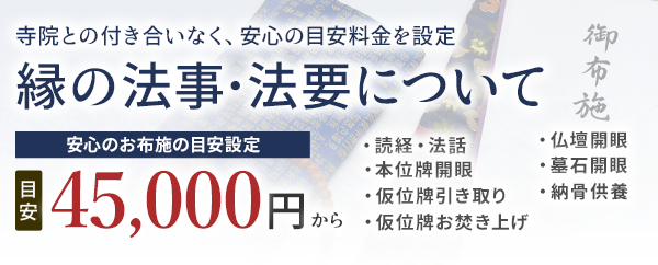 縁は法事・法要の寺院手配だけではなく、お葬式の際の寺院手配や戒名授与の寺院のお手配も承っております。